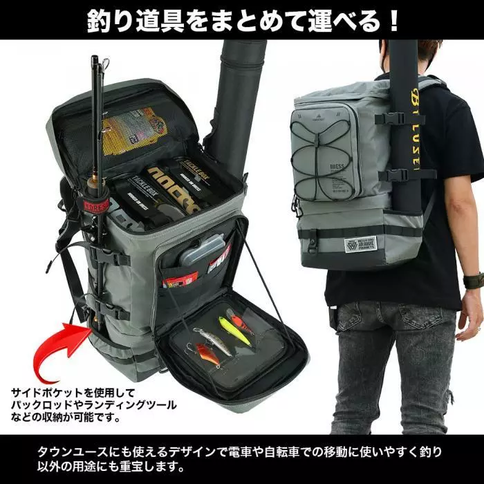 DRESS FISHING BACKPACK IS A MULTIFUNCTIONAL SYSTEM BACKPACK WITH A RICH STORAGE SYSTEM AND EXPANDABILITY, AS WELL AS FISHING SCENES AND EVERYDAY USE. THE BASIC DESIGN IS THE SIZE ACCORDING TO THE FISHING BOX AND CAN BE STORED WITHOUT WASTE. THE LOWER COMPARTMENT OF THE BACKPACK IS ALSO A SIMPLE COOLER AND CONVENIENT FOR BRINGING BACK THE FISH YOU CATCH. THE FRONT COMPARTMENT HAS A FINE POCKET THAT ALLOWS YOU TO STORE NOT ONLY PHISHING TOOLS BUT ALSO SMARTPHONES AND VALUABLES FUNCTIONALLY. IN ADDITION, IT IS EASY TO USE FOR TRAVELING BY TRAIN OR BICYCLE WITH A DESIGN THAT CAN BE USED FOR TOWN USE, AND IT IS USEFUL NOT ONLY IN ALL FISHING SCENES BUT ALSO OUTDOORS, LEISURE, TRAVEL, ETC.