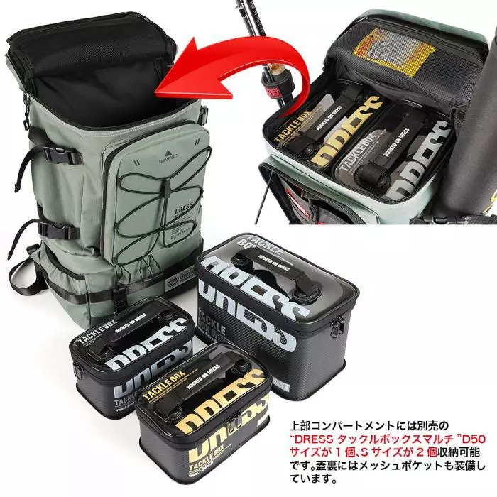 If you put a cooling agent, it will also be a simple cooler box. The upper row of the main space contains a DRESS tackle box multi.