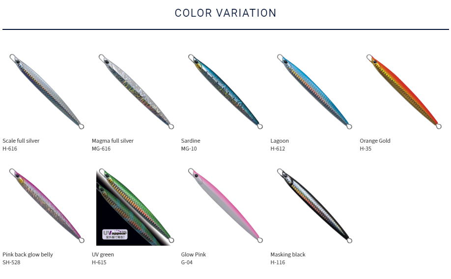 Jigaro Massive has been designed with a compact body that is downsized by about 22% compared to the total length of normal Jigaro. It has a excellent response to rod work and the slide action produced by it are the high-dimensionality of the Jigaro family. By achieving stable flight distance even under adverse wind conditions and tight control of tidal currents, it enables new tactics for the capture of fields that have been attacked until now. At the same time, a small silhouette becomes a trump card for a cunning target that exclusively consumes a small bait represented by sardines.